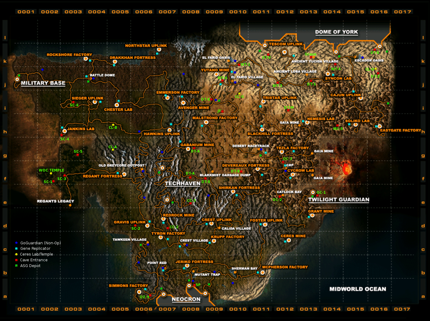 This is a massive very detailed coloured map, with just about everything on it, including cave locations, DoY tunnel entrances, Genreps, GoGo...etc